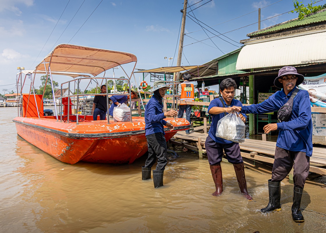 Mr. Wichai Bandasak, Mayor of Pak Kret City Municipality (5th from left), and Mr. Somchai Thatchang, Mayor of Ko Kret Sub-district Administrative Organization (3rd from right), were the representatives to receive the donation for onward distribution to help and relieve the suffering of citizens affected by the floods in the areas of Pak Kret District and Ko Kret Sub-district Administrative Organization, Nonthaburi Province. IMPACT Insight would like to share the photos of this mission of kindness