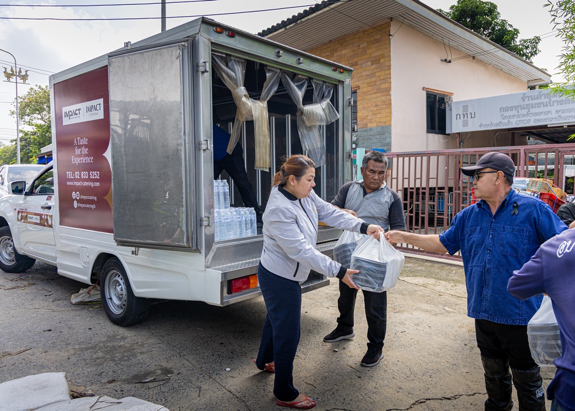On November 14, 2025, Ms. Jintana Phongphakdee, Director of Corporate Communications for IMPACT Exhibition Management Co., Ltd., representing Bangkok Land Public Company Limited (BLAND) and its Affiliated Companies, delivered 3,200 sets of food and drinking water to Pak Kret City Municipality, Nonthaburi Province, under the “Sharing Kindness, Giving Love to Society” project.
