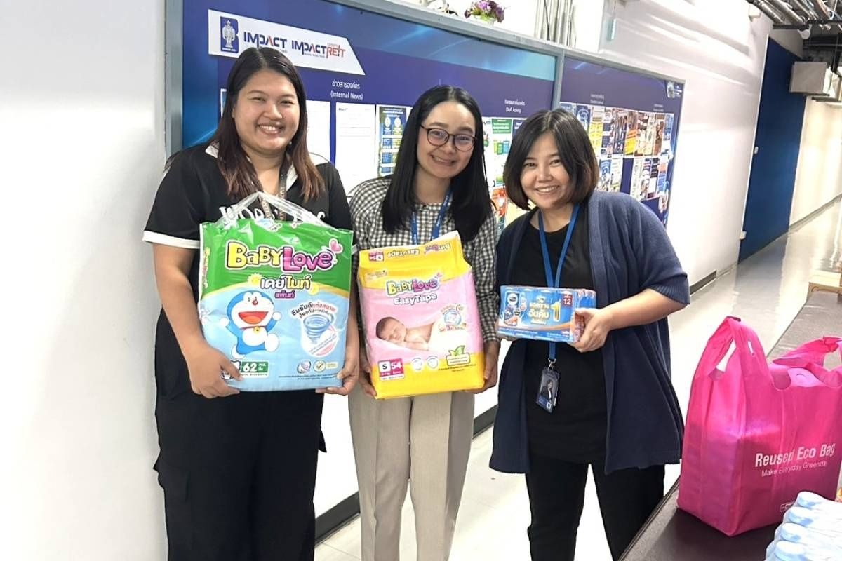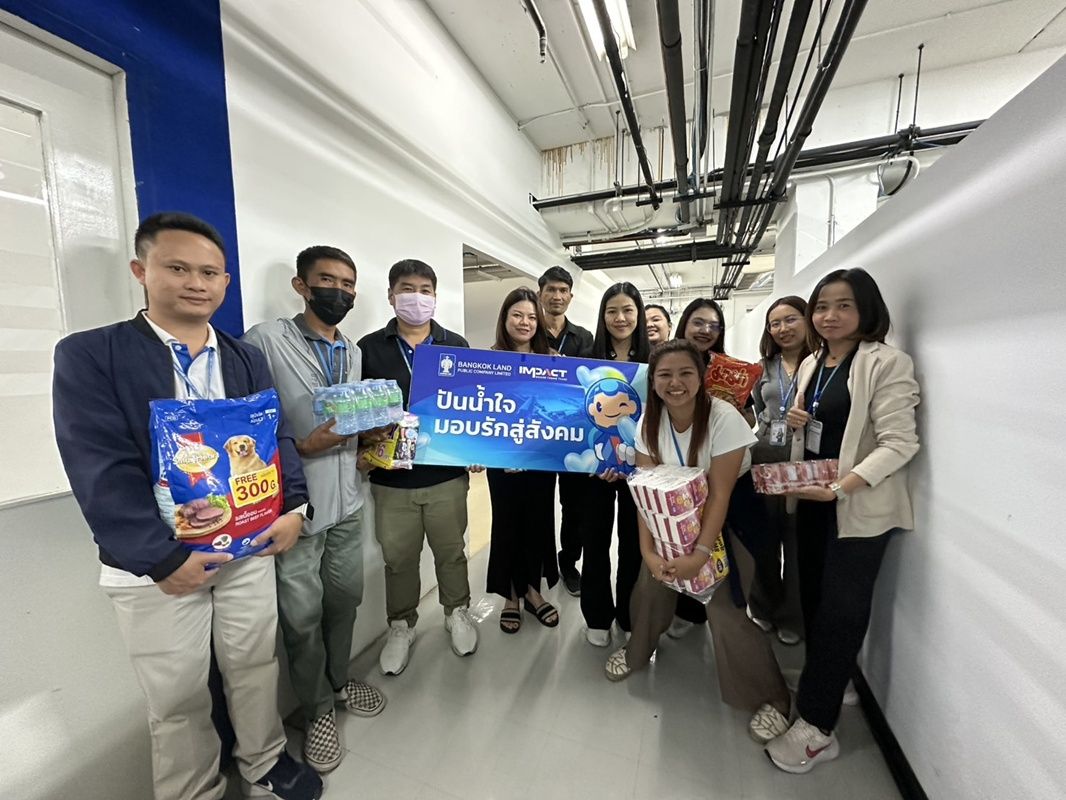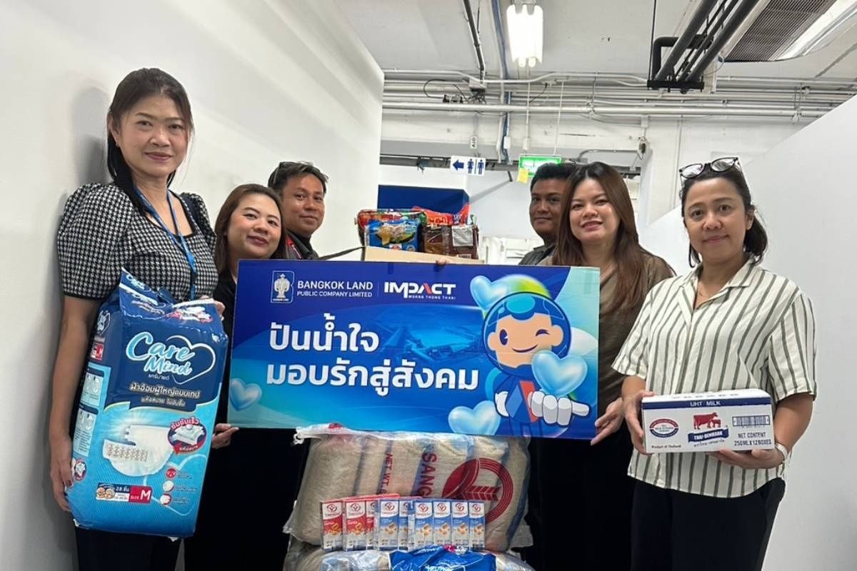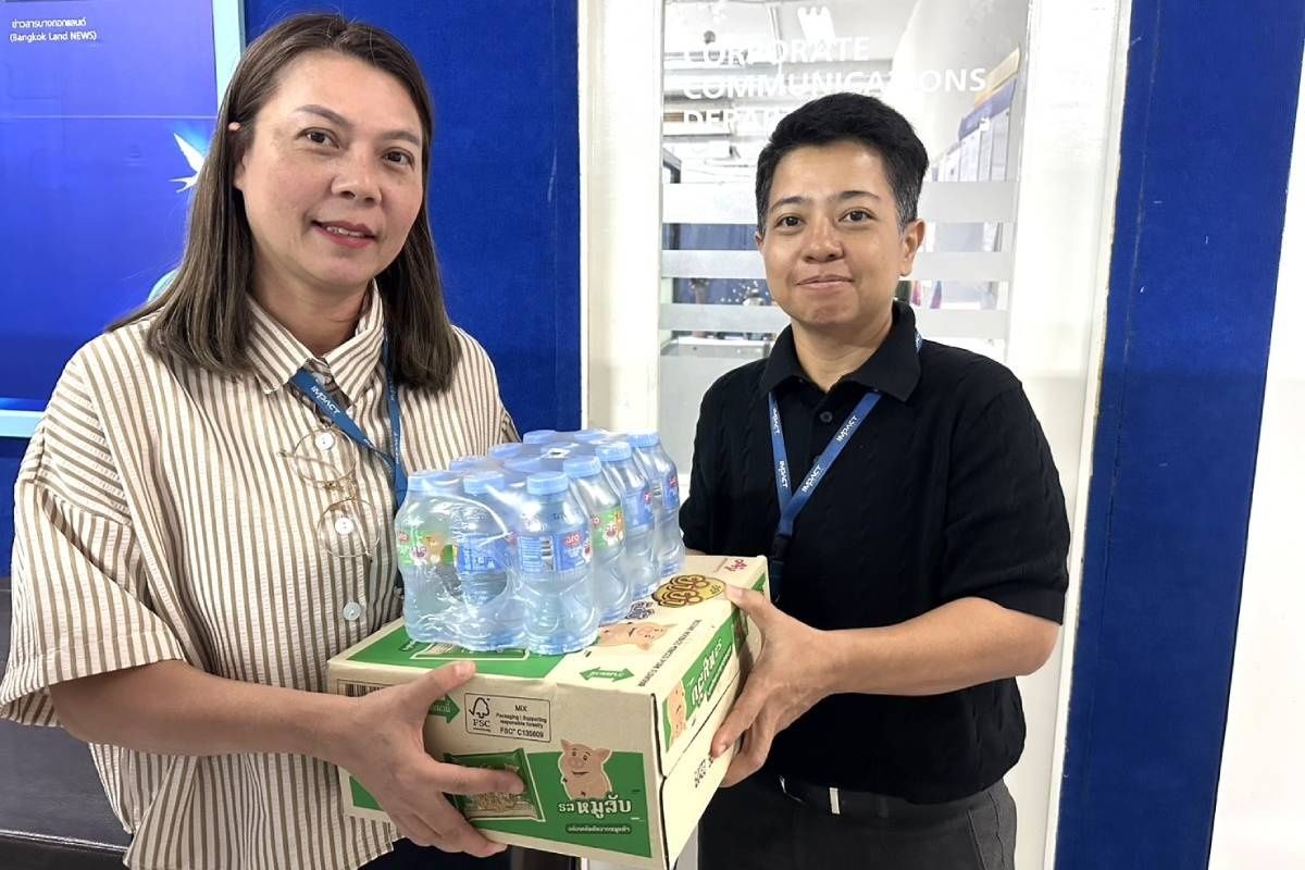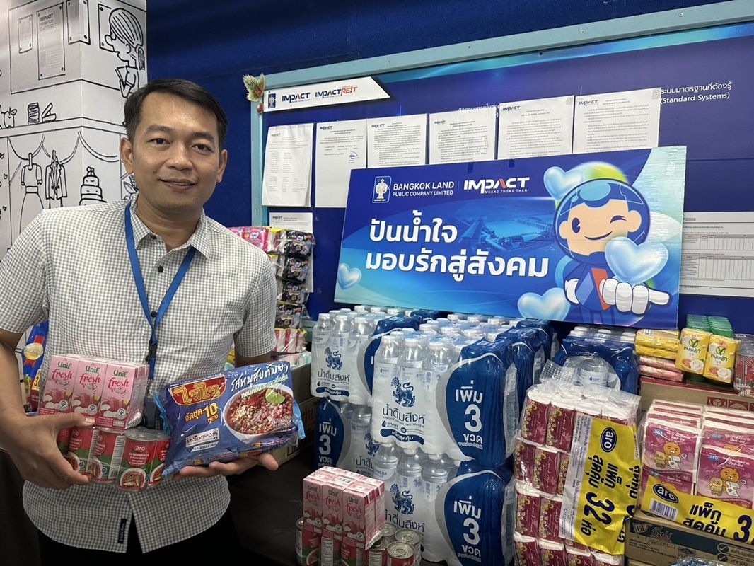 Ms. Jintana Phongpakdee, Director of Corporate Communications, IMPACT Exhibition Management Co., Ltd., representing the employees of Bangkok Land Public Company Limited and its affiliated companies, delivered essential supplies—including rice, dry food, drinking water, and cleaning equipment—to a representative of the Mirror Foundation for subsequent distribution to Southern flood victims.