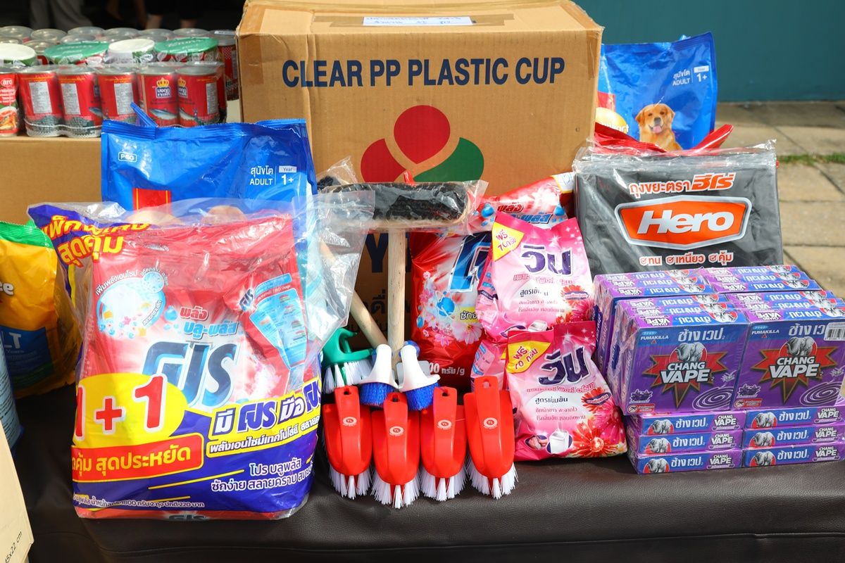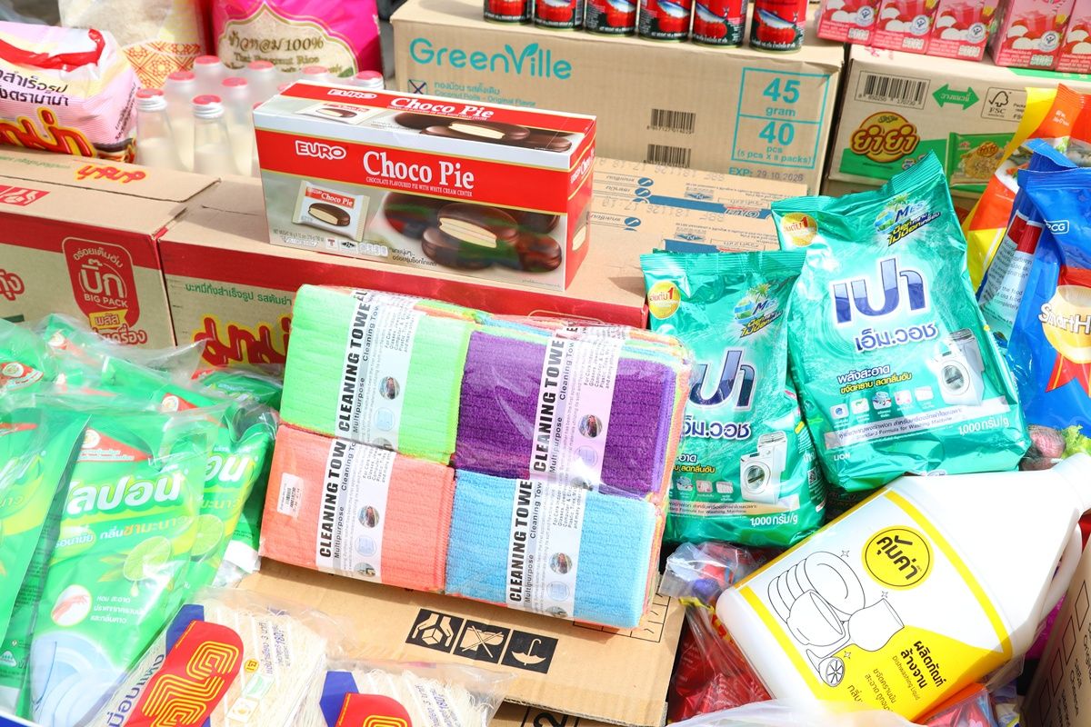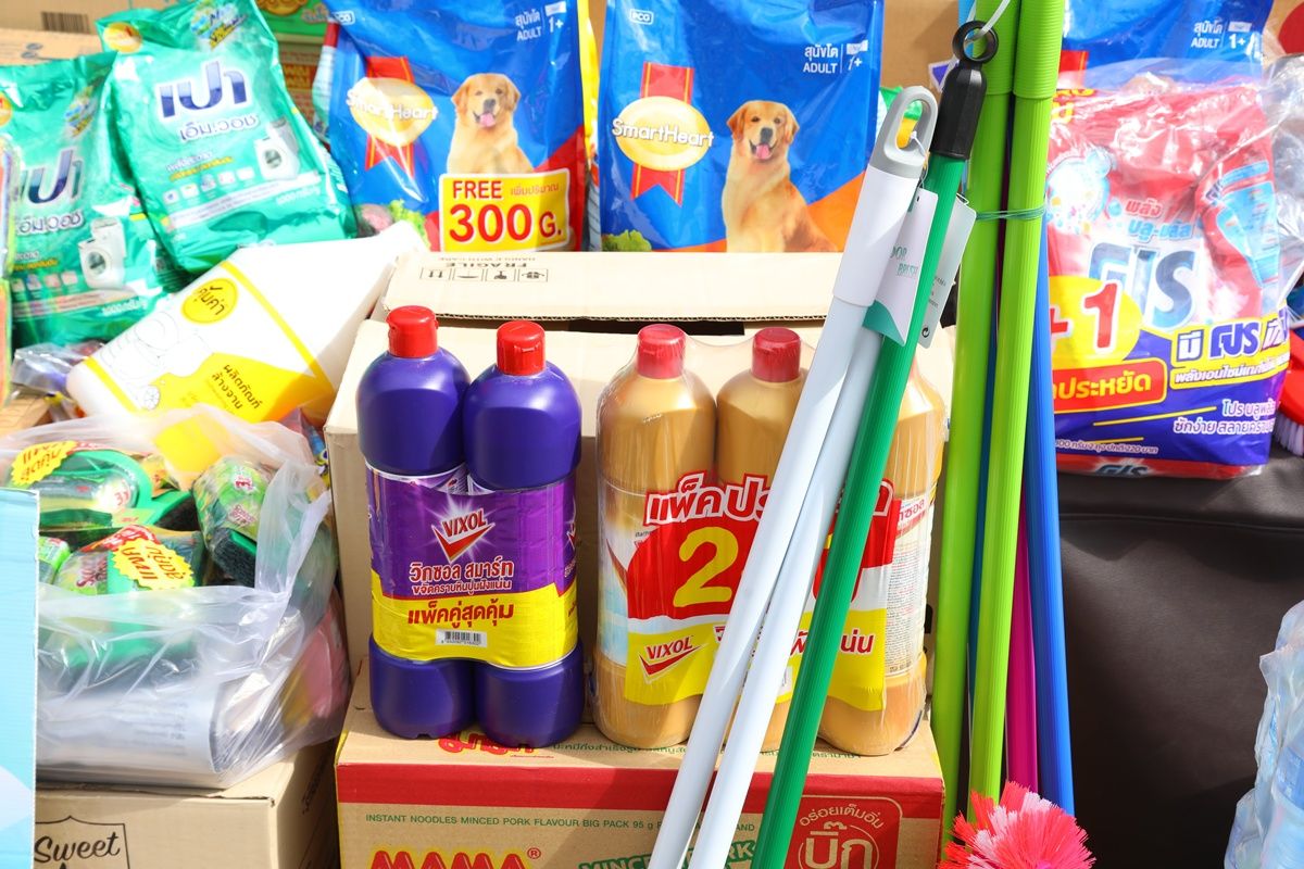 Essential supplies—including rice, dry food, drinking water, medicine, and cleaning equipment (floor brushes, detergent, and cleaning liquid)—donated by the staff of Bangkok Land PCL and its affiliated companies through the ongoing "Sharing Compassion, Giving Love to Society" project, are now being delivered to Southern flood victims via the Mirror Foundation.