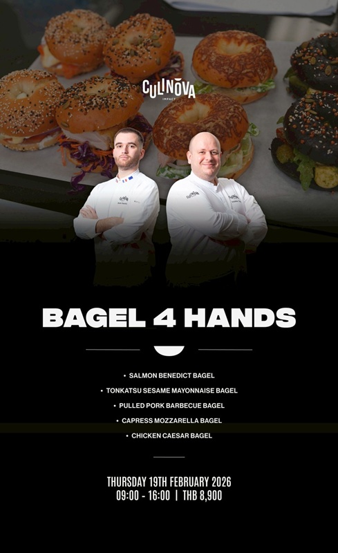ต่อกันด้วยคลาสที่เอาใจคนรัก Bagel กับ คลาส Bagel 4 Hands คลาสยอดนิยม กลับมาเปิดอีกครั้ง!! เรียนรู้เทคนิคการทำเบเกิล พร้อมการต่อยอดเป็นเมนูคาวหลากหลาย สอนโดยเชฟสองท่าน ถ่ายทอดเทคนิคและไอเดียร่วมกันตลอดคลาส เมนูที่เรียน: