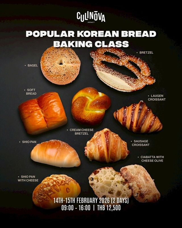 กลับมาอีกครั้งตามคำเรียกร้อง! กับ “Atelier Bakery – Weekend Program” กับหลักสูตรเบเกอรี่เข้มข้น 5 สุดสัปดาห์ นำสอนโดย Chef Pierre Saucès แชมป์เบเกอรี่ระดับยุโรป เนื้อหาครอบคลุมขนมปังคลาสสิก ซาวโดว์ เวียนนัวเซอรี และเทคนิคพัฟเพสตรี เรียนรู้แบบเป็นขั้นตอนตลอดทั้งโปรแกรม คลาสลงมือทำจริงแบบกลุ่มเล็ก พร้อมเนื้อหาสุดเข้มข้น เรียนกันอัดแน่น 5 สุดสัปดาห์ คลาสเรียนระหว่างวันที่ 28 ก.พ. – 29 มี.ค. 2569