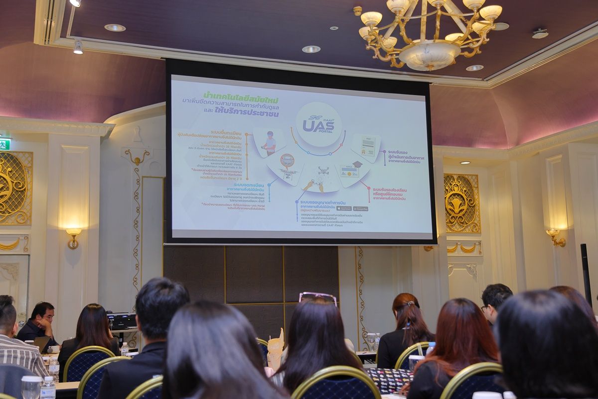 วิทยากรผู้เชี่ยวชาญจาก CAAT ได้ถ่ายทอดความรู้เชิงลึก ครอบคลุมตั้งแต่ขั้นตอนการขออนุญาต ไปจนถึงการใช้โดรนในชีวิตประจำวันอย่างถูกต้องและปลอดภัย โดยมี คุณจินตนา พงษ์ภักดี ผู้อำนวยการสำนักงานฝ่ายสื่อสารองค์กร เป็นตัวแทนต้อนรับและมอบของที่ระลึกให้แก่คณะวิทยากร