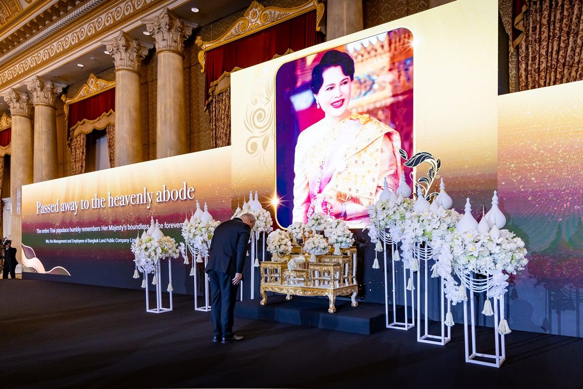 เมื่อช่วงเช้า วันที่ 3 พฤศจิกายน 2568 ที่ผ่านมา บริษัท บางกอกแลนด์ จำกัด (มหาชน) และบริษัทในเครือ นำโดยคุณพอลล์ กาญจนพาสน์ ประธานเจ้าหน้าที่บริหาร บริษัท บางกอกแลนด์ จำกัด (มหาชน) และบริษัทในเครือ พร้อมด้วยคณะผู้บริหารและพนักงานทุกระดับ จัดพิธีถวายความอาลัยเบื้องหน้าพระฉายาลักษณ์ สมเด็จพระนางเจ้าสิริกิติ์ พระบรมราชินีนาถ พระบรมราชชนนีพันปีหลวง ณ ห้องรอยัล จูบิลี่ บอลรูม อาคารชาเลนเจอร์ 1 อิมแพ็ค เมืองทองธานี