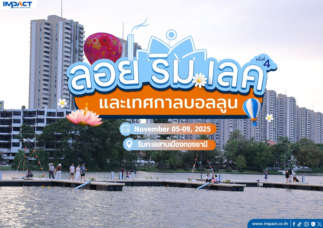 ชวนพี่ๆ น้อง ๆ ชาวอิมแพ็ค มาร่วมสืบสานประเพณีลอยกระทงไปด้วยกัน กับ งาน ลอย ริม เลค และเทศกาลบอลลูน 2025 ระหว่างวันที่ 5- 9 พฤศจิกายน 2568 ณ ริมทะเลสาบเมืองทองธานี ตลอด 5 วันเต็ม พบกับกิจกรรมสุดพิเศษ ไม่มีซ้ำ