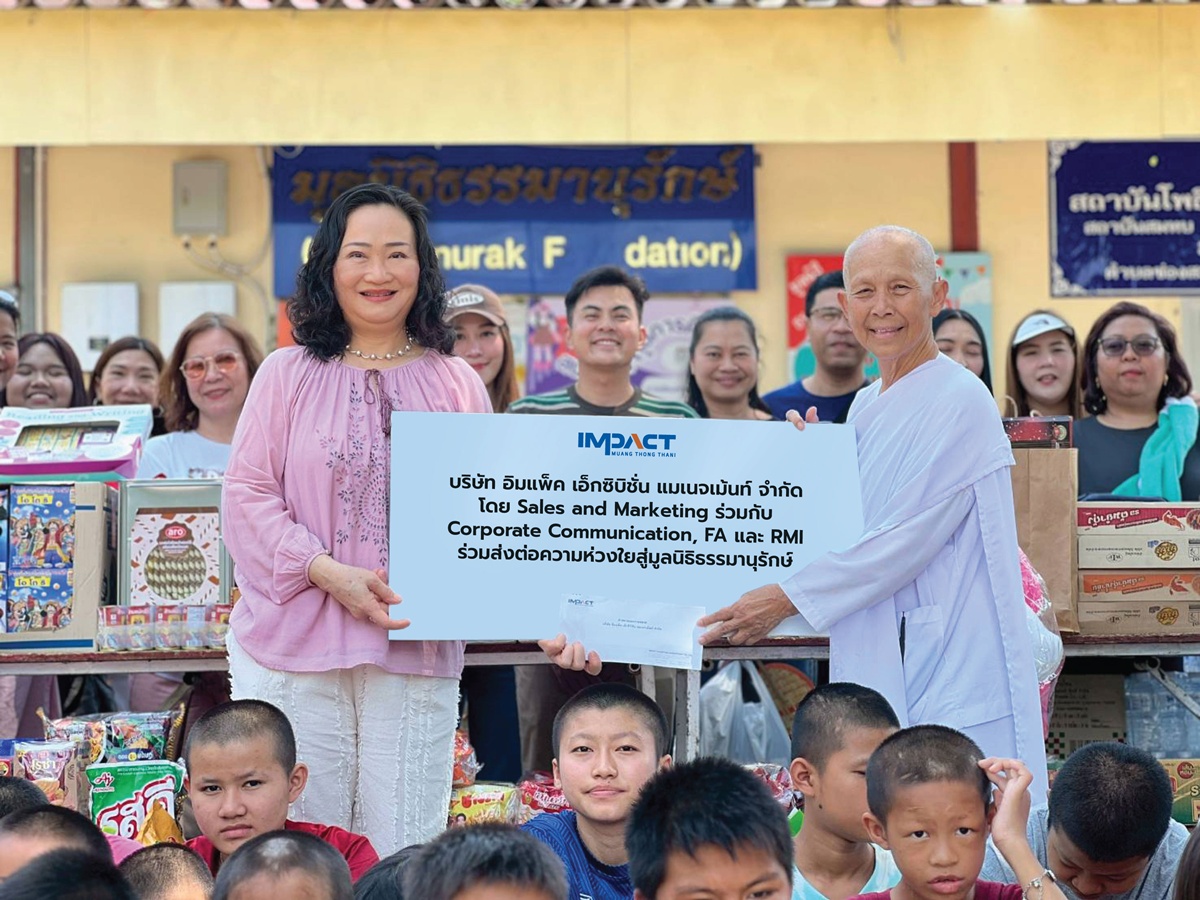 โดย คุณอัจฉราวรรณ ศุภางคะรัตน์ ผู้อำนวยการฝ่ายขายและการตลาด บริษัท อิมแพ็ค เอ็กซิบิชั่น แมเนจเม้นท์ จำกัด ในฐานะตัวแทนศูนย์แสดงสินค้าและการประชุม อิมแพ็ค เมืองทองธานี ได้ร่วมมอบทุนสนับสนุนให้แก่ตัวแทนมูลนิธิธรรมานุรักษ์ พร้อมทั้งนำสิ่งของจำเป็นมามอบให้กับน้อง ๆ ไม่ว่าจะเป็นเสื้อผ้า อาหาร ขนม และของเล่น ตลอดจนการจัดเลี้ยงอาหารกลางวันมื้อพิเศษ เพื่อเติมเต็มความสุขและสร้างรอยยิ้มให้กับน้อง ๆ อย่างใกล้ชิดบรรยากาศเต็มไปด้วยความอบอุ่น ความสนุกสนาน และเสียงหัวเราะ ซึ่งสะท้อนให้เห็นถึงพลังของการ “ให้” ที่เกิดขึ้นจากความตั้งใจของทุกคนในองค์กร